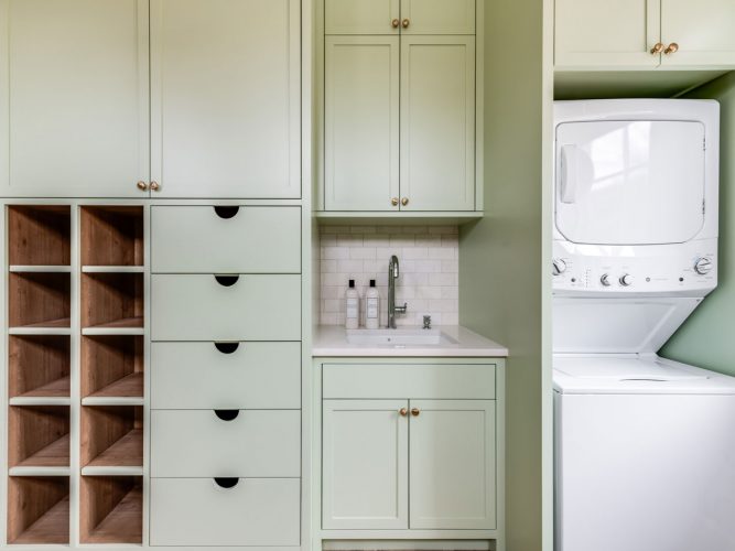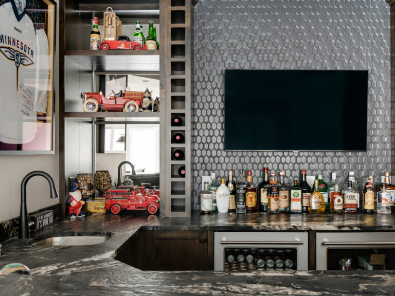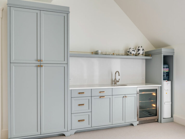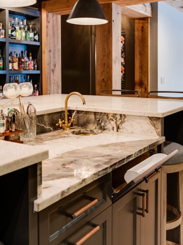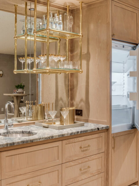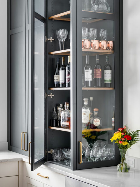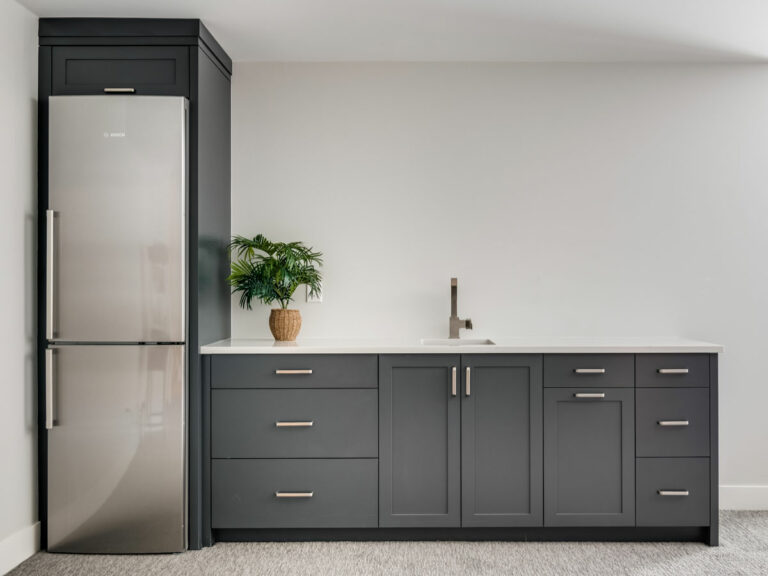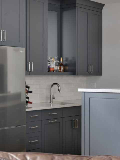 Small spaces deserve to be beautiful and functional, too. Elevate your basement bar or guest house kitchenette with custom cabinetry and high-end finishes.