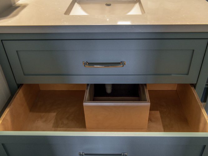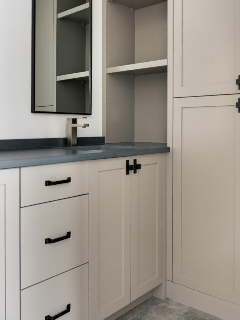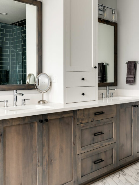 Create your sanctuary while keeping your bathroom neat and organized. Custom cabinetry ensures there’s a place for everything you need.